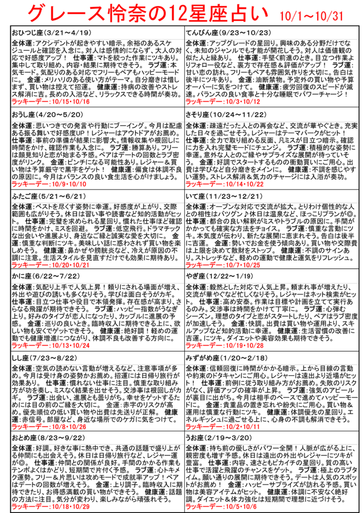 “怜奈の 今週の12星座占い”をご覧くださいね。