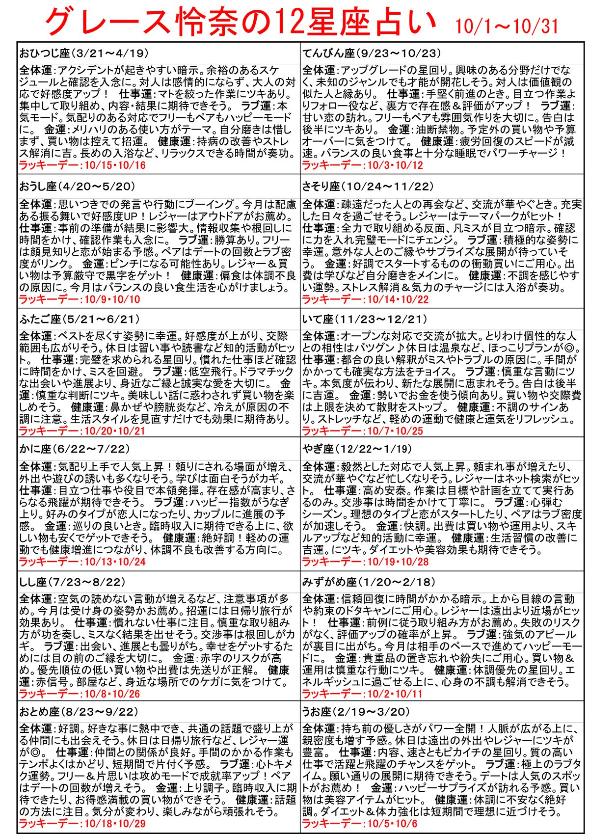 “怜奈の 今週の12星座占い”をご覧くださいね。